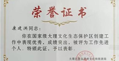 在國(guó)家級(jí)大理文化生態(tài)保護(hù)區(qū)創(chuàng)建10周年之際,為激勵(lì)全州非遺保護(hù)部門、非遺工作者、非遺繼承人不斷創(chuàng)新創(chuàng)造,為非遺事業(yè)做出更大的貢獻(xiàn),近日,大理州文化和旅游局大張旗鼓的表彰了一批在全州非遺工作中成績(jī)突出的先進(jìn)典型。大理州企業(yè)家協(xié)會(huì)理事單位——賓川縣康莊農(nóng)業(yè)生態(tài)觀光開(kāi)發(fā)有限公司董事長(zhǎng)康建洪榮獲“國(guó)家級(jí)大理文化生態(tài)保護(hù)區(qū)創(chuàng)建工作先進(jìn)個(gè)人”稱號(hào)受到表彰??到ê橛?008年1月在賓川縣仁和村創(chuàng)建了賓川古建真空磚瓦廠,他憑著對(duì)磚瓦事業(yè)的一份鐘愛(ài),在改進(jìn)古建磚瓦燒制技術(shù)的同時(shí),引進(jìn)了劍川木雕工藝人才,將木雕傳統(tǒng)工藝與傳統(tǒng)
