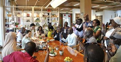7月26日,大理州企業(yè)家協(xié)會(huì)會(huì)員單位——云南下關(guān)沱茶(集團(tuán))股份有限公司沱茶館內(nèi)茶香裊裊。來自萬里之外的非洲塞內(nèi)加爾共和國新聞官員與記者研修班一行到訪下關(guān)沱茶集團(tuán)公司考察調(diào)研,一場(chǎng)跨越山海的茶文化交流在此溫情啟幕??疾靾F(tuán)抵達(dá)時(shí),沱茶館工作人員早已在門口熱情迎接。步入大廳,下關(guān)沱茶館負(fù)責(zé)人代表公司對(duì)遠(yuǎn)道而來的塞內(nèi)加爾友人致以熱烈歡迎。講解員首先指向大廳中央的品牌LOGO介紹道:“這枚形似傳統(tǒng)印章的標(biāo)志,承載著‘誠信進(jìn)取’的企業(yè)核心價(jià)值觀,既是對(duì)社會(huì)發(fā)展的責(zé)任擔(dān)當(dāng),更是對(duì)全球消費(fèi)者的莊嚴(yán)承諾。”品牌logo背