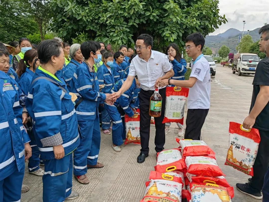 6月8日,永平縣人大常委會(huì)副主任、縣總工會(huì)主席羅李、縣總工會(huì)常務(wù)副主席蔣玉保、縣總工會(huì)副主席張正軍一行到大理州企業(yè)家協(xié)會(huì)常務(wù)副會(huì)長單位——云南順豐洱海環(huán)??萍脊煞萦邢薰?/span>下屬的永平縣順豐洱海環(huán)保科技有限責(zé)任公司誠摯慰問一線環(huán)衛(wèi)工人。