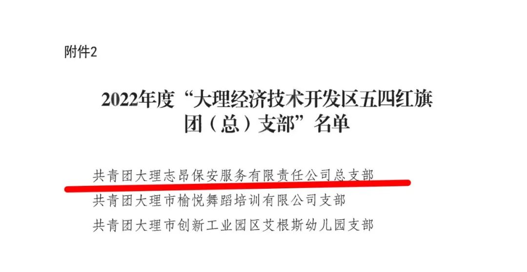大理志昂保安公司團(tuán)總支榮獲大理經(jīng)開區(qū)“五四紅旗團(tuán)總支部”稱號(hào)