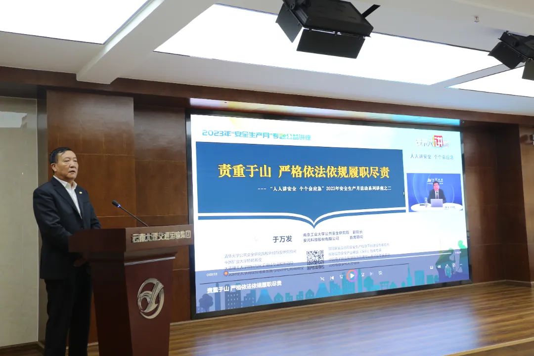 為深入宣傳貫徹黨的二十大精神和習近平總書記關(guān)于安全生產(chǎn)的重要論述,貫徹落實國務(wù)院安委會安全生產(chǎn)十五條措施及省、州安全生產(chǎn)戰(zhàn)略部署,推進“安全生產(chǎn)月”各項工作落實。6月14日上午,大理州企業(yè)家協(xié)會常務(wù)副會長單位——大理交通運輸集團公司開展安全生產(chǎn)月主題活動,組織觀看2023年“安全生產(chǎn)月”專題講座《責重于山 嚴格依法依規(guī)履職盡責》,對“安全生產(chǎn)月”活動進行再動員、再部署、再強調(diào),進一步統(tǒng)一思想認識,強化責任落實,促進集團公司安全生產(chǎn)工作落地落實。集團公司副董事長、常務(wù)副總經(jīng)理陳永明主持講座。