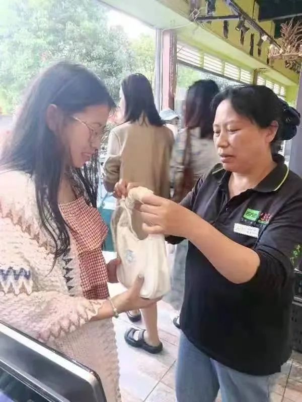 大約半小時之后,兩位年輕女孩匆忙走到收銀臺詢問是否有人撿到了一個小包。收銀員隨即叫來值班經(jīng)理和羅英核實了信息后,將小包還給了失主。失主接過包后,對失而復(fù)得的心情非常激動,多次表示感謝。