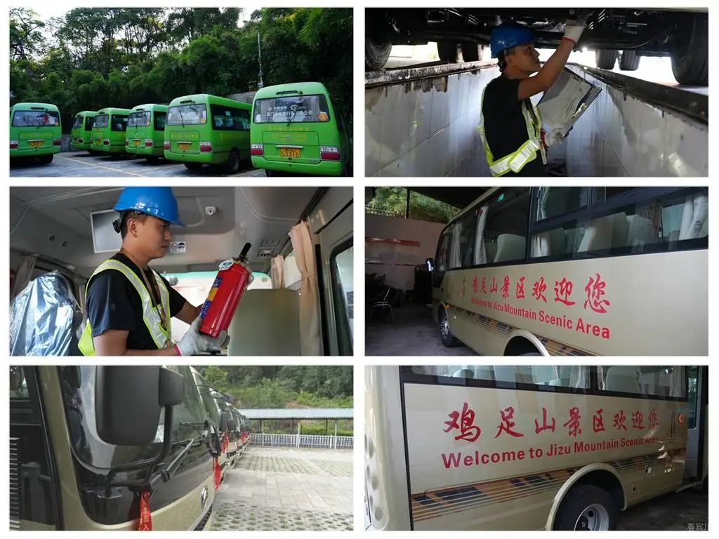 在集中開展景區(qū)節(jié)前索道、景區(qū)旅游專線客運(yùn)車、景區(qū)道路大保養(yǎng)、大排查、大檢查工作中,為確保節(jié)前“體檢”工作按質(zhì)按量順利完成,9月5日至8日,雞足山景區(qū)索道經(jīng)營部和旅游專線客運(yùn)車隊80多名員工克服多雨、大霧、寒冷的多變天氣,采取每天中午12時至夜間23時開展排查、檢查和保養(yǎng)工作,集中對站內(nèi)設(shè)備的V型皮帶張緊系統(tǒng)、推車器總承及支架輪襯的更換,輪胎氣壓檢查和設(shè)備清潔等(共10個大項、190多個小項) 等項目進(jìn)行檢查維護(hù)保養(yǎng)及更換。