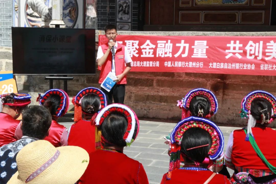 大理市農商銀行還以“辦惠民實事”為切入點,構筑金融知識普及宣傳教育體系,培養(yǎng)“金融知識輔導員”,以“線上+線下”“傳統(tǒng)+創(chuàng)新”等多渠道、多載體、多角度,用消費者易于理解和接受的教育宣傳方式開展活動,引導消費者增強風險防范意識,提升金融素養(yǎng)。
