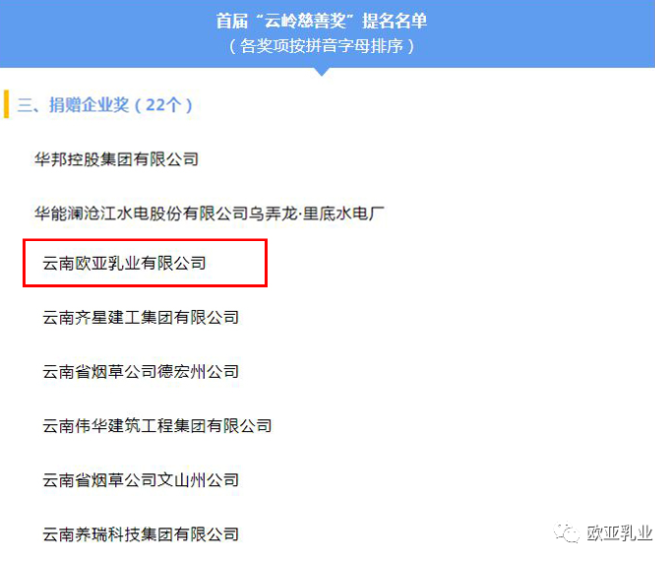 投身公益事業(yè) 爭當(dāng)慈善先鋒|歐亞乳業(yè)榮獲“云嶺慈善獎”