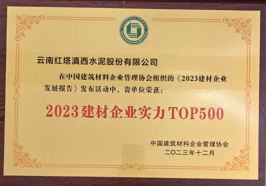云南紅塔滇西水泥榮登2023中國(guó)建材企業(yè)500強(qiáng)