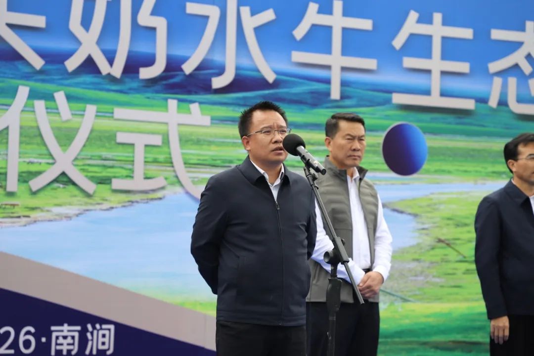 為認真貫徹落實省、州黨委、政府加快推進大理乳業(yè)高質(zhì)量發(fā)展的決策部署,10月26日上午,全球高海拔地區(qū)規(guī)模最大,也是大理州“8+1”萬頭牧場建設(shè)項目中唯一一個奶水牛場,由大理州企業(yè)家協(xié)會理事單位——來思爾乳業(yè)投資建設(shè)的大理來思爾摩菲水牛云端牧場建成暨進牛儀式在大理州南澗縣擁翠鄉(xiāng)隆重舉行。中共大理州委副書記肖創(chuàng)勇,州人大常委會副主任字云飛,州政府黨組成員、一級巡視員吉向陽,各州級相關(guān)單位和各縣相關(guān)領(lǐng)導(dǎo)出席了儀式。來思爾乳業(yè)總經(jīng)理馬萬平出席了儀式并作表態(tài)發(fā)言。