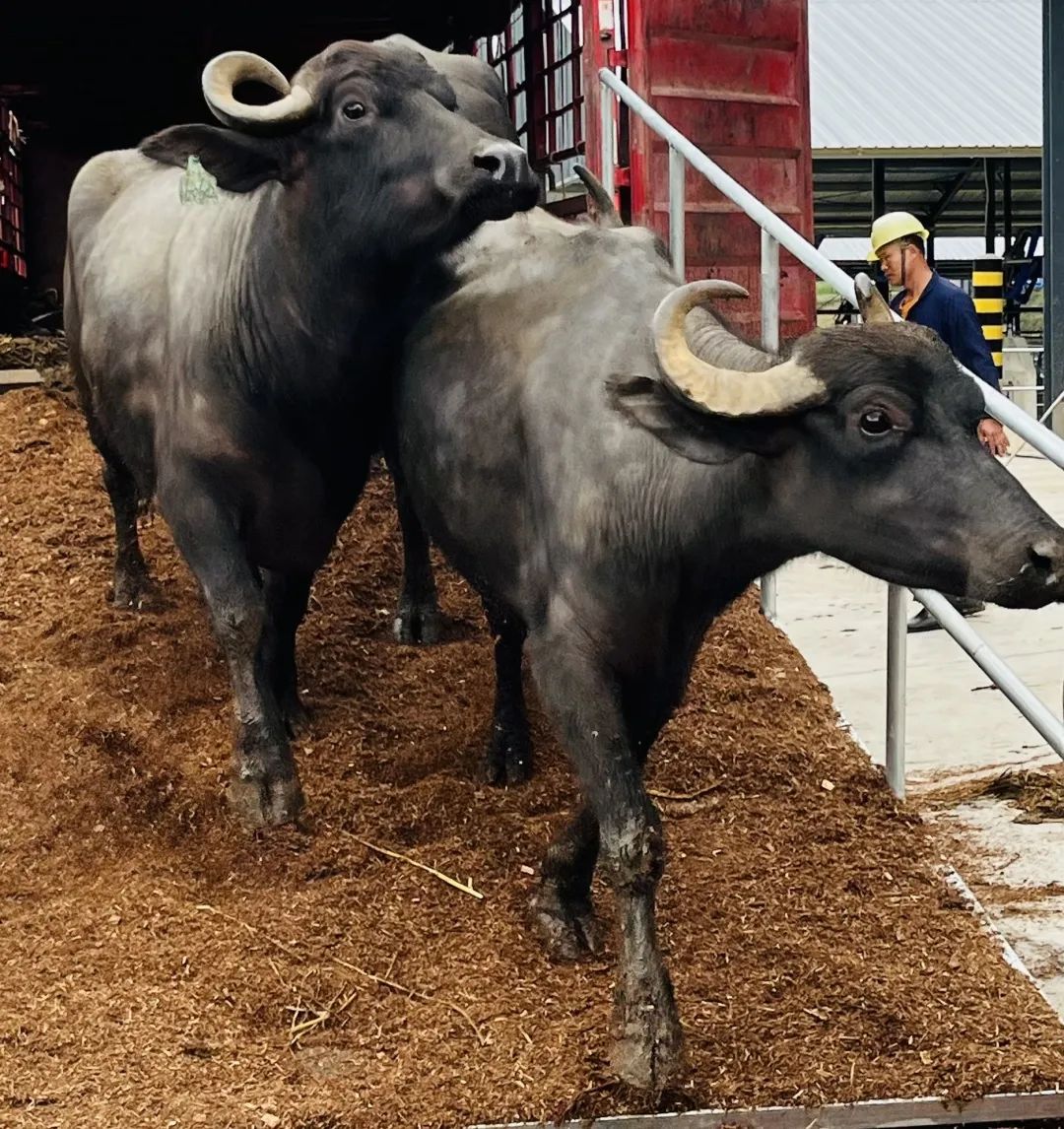摩菲水牛源于1957年印度贈予我國的46頭“摩拉”奶水牛、巴基斯坦“尼里•拉菲”與云南本土奶水牛雜交并經(jīng)數(shù)代改良的優(yōu)良奶水牛品種,其所產(chǎn)的水牛奶蛋白質(zhì)含量是普通牛奶的1.71倍(數(shù)據(jù)來源:來思爾收購奶源平均蛋白含量指標水牛奶-4.8%、普通牛奶-2.8%),有“奶中黃金”之稱。隨著牧場的投入運營,來思爾精選的首批300多頭優(yōu)質(zhì)摩菲水牛也一起入住了它們的新家。