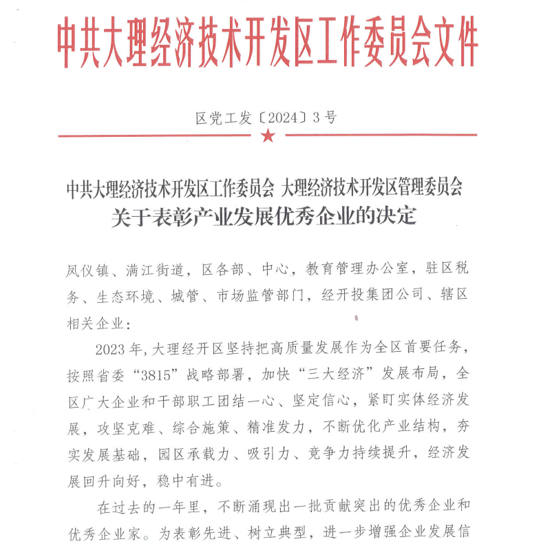 近日,大理經(jīng)濟(jì)技術(shù)開發(fā)區(qū)召開了2024年工作會(huì)議,會(huì)議上宣讀了《大理經(jīng)濟(jì)技術(shù)開發(fā)區(qū)管理委員會(huì)關(guān)于表彰產(chǎn)業(yè)發(fā)展優(yōu)秀企業(yè)的決定》,并對優(yōu)秀企業(yè)進(jìn)行了表彰獎(jiǎng)勵(lì)。在表彰中,大理州企業(yè)家協(xié)會(huì)常務(wù)副會(huì)長單位——云南順豐洱海環(huán)保科技股份有限公司榮獲“產(chǎn)業(yè)發(fā)展特別貢獻(xiàn)獎(jiǎng)”。