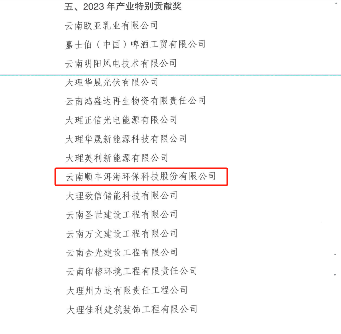 順豐洱海環(huán)保股份榮獲大理經(jīng)開區(qū)“產(chǎn)業(yè)發(fā)展特別貢獻(xiàn)獎(jiǎng)”