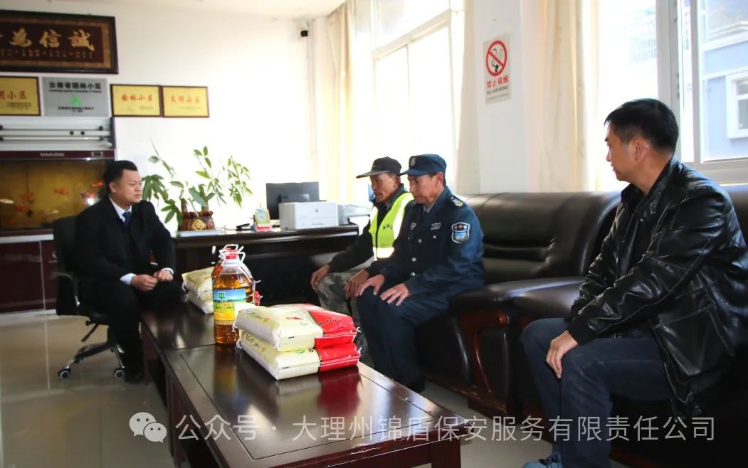 春節(jié)將至,歲寒情暖。為貫徹習近平總書記關心關愛困難職工的指示精神,在2024年新春佳節(jié)來臨之際,大理州企業(yè)家協(xié)會副會長單位——大理州錦盾保安服務有限責任公司開展“迎新春、送溫暖”慰問活動,走訪慰問困難員工、一線值守保安員,送去公司的關心、關愛和新年的祝福。