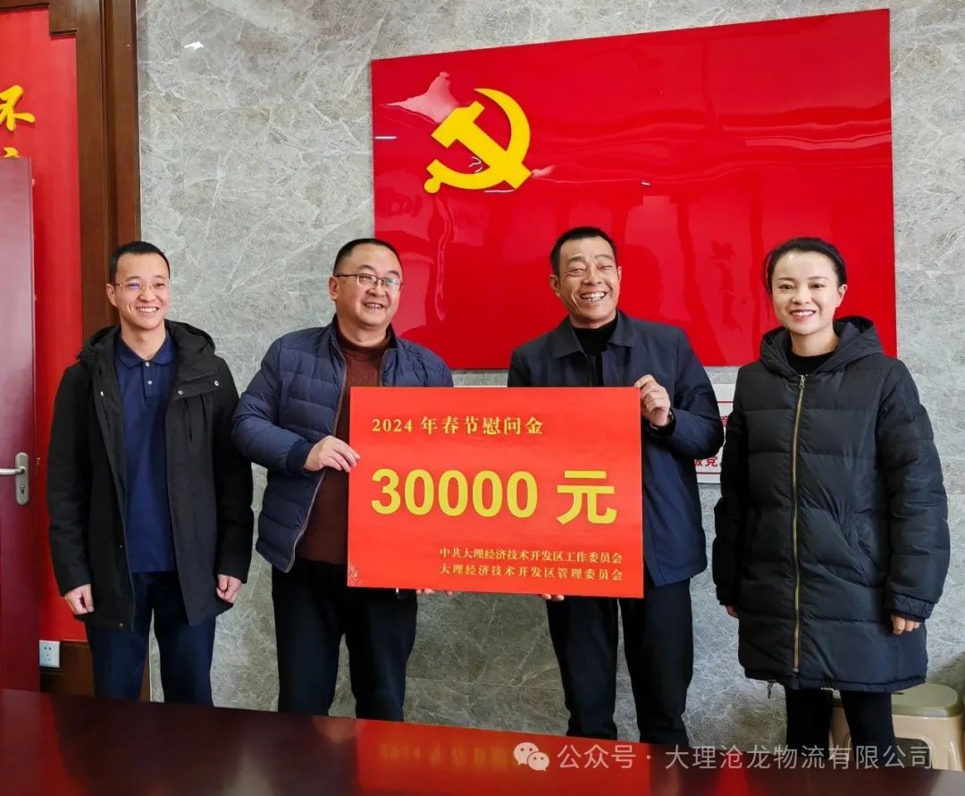 在新春佳節(jié)到來之際,1月31日下午,大理經(jīng)濟技術開發(fā)區(qū)黨工委副書記李志東帶領慰問組專程到大理州企業(yè)家協(xié)會常務副會長單位——大理滄龍物流有限公司開展春節(jié)走訪慰問活動。向公司全體員工致以新春問候和美好祝福,為物流一線職工送來黨和政府的溫暖和關懷。公司董事長龔勇全代表全體干部職工接受了慰問。
