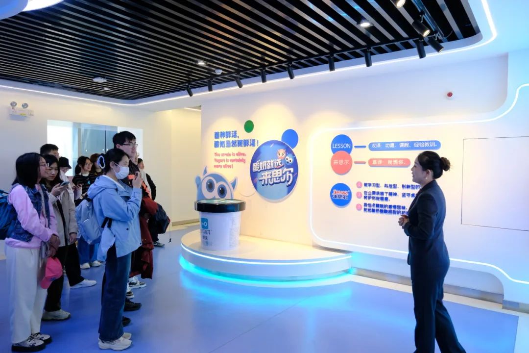 企業(yè)負(fù)責(zé)人首先向支隊(duì)同學(xué)講解了公司名稱的由來(lái)以及內(nèi)涵。來(lái)思爾公司作為一個(gè)學(xué)習(xí)型,研究型和創(chuàng)新型企業(yè),始終秉持園丁精神和追求卓越的態(tài)度,不斷優(yōu)化產(chǎn)品研發(fā),進(jìn)行由實(shí)驗(yàn)室到產(chǎn)業(yè)集群的不斷跨越。負(fù)責(zé)人向支隊(duì)同學(xué)展示了來(lái)思爾全產(chǎn)業(yè)鏈數(shù)字孿生平臺(tái),企業(yè)的生產(chǎn)全過(guò)程可進(jìn)行遠(yuǎn)程監(jiān)督和數(shù)字化分析調(diào)控。接著,支隊(duì)同學(xué)從生產(chǎn)環(huán)境、菌種培育等多個(gè)角度了解了一杯奶的生產(chǎn)過(guò)程,對(duì)企業(yè)精益求精,追求卓越的精神有了全方位的理解。