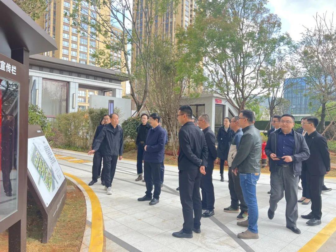 3月27日下午,省住房城鄉(xiāng)建設(shè)廳廳長(zhǎng)尹勇、省住房城鄉(xiāng)建設(shè)廳辦公室主任路尚文、省住房城鄉(xiāng)建設(shè)廳城建處處長(zhǎng)孫俊偉、省住房城鄉(xiāng)建設(shè)廳房產(chǎn)處副處長(zhǎng)劉剛一行,在州住房城鄉(xiāng)建設(shè)局黨組書記謝莉、州住房城鄉(xiāng)建設(shè)局局長(zhǎng)李文榮的陪同下,深入到大理州企業(yè)家協(xié)會(huì)常務(wù)副會(huì)長(zhǎng)單位——大交集團(tuán)下屬的金辰·滿江印項(xiàng)目開展調(diào)研工作。