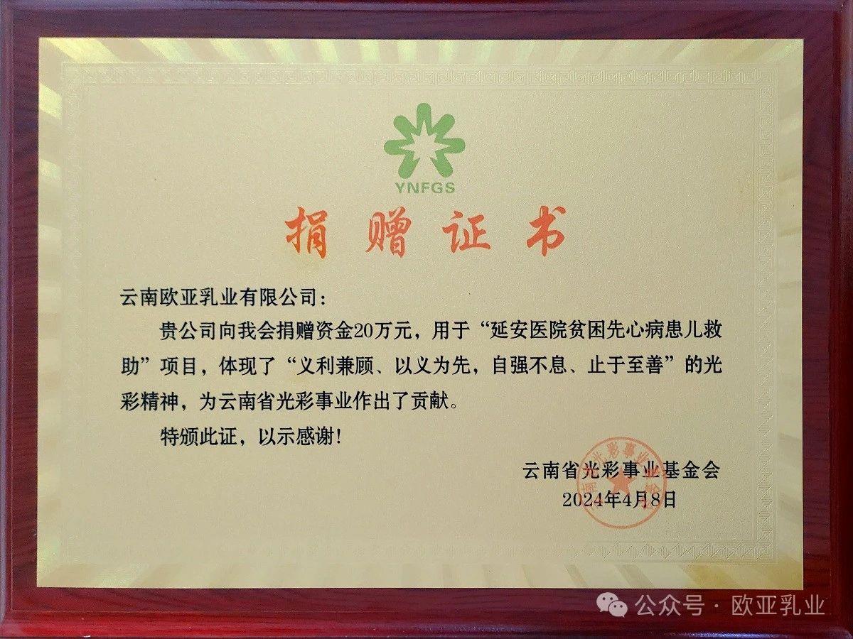 用愛(ài)心點(diǎn)燃希望 用行動(dòng)托舉成長(zhǎng)|歐亞乳業(yè)為“救助先天性心臟病困難患兒項(xiàng)目”捐款