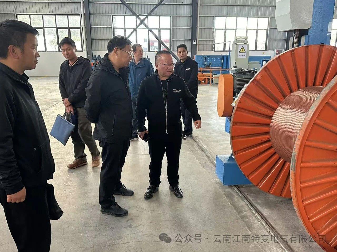 11月26日,大理經(jīng)濟(jì)技術(shù)開發(fā)區(qū)管委會主任汪國武、副主任張福弟率領(lǐng)經(jīng)開區(qū)工信、稅務(wù)、市場監(jiān)管等相關(guān)部門領(lǐng)導(dǎo)到大理州企業(yè)家協(xié)會副會長單位——云南江南特變電氣有限公司旗下企業(yè)云南百超電纜有限公司調(diào)研。