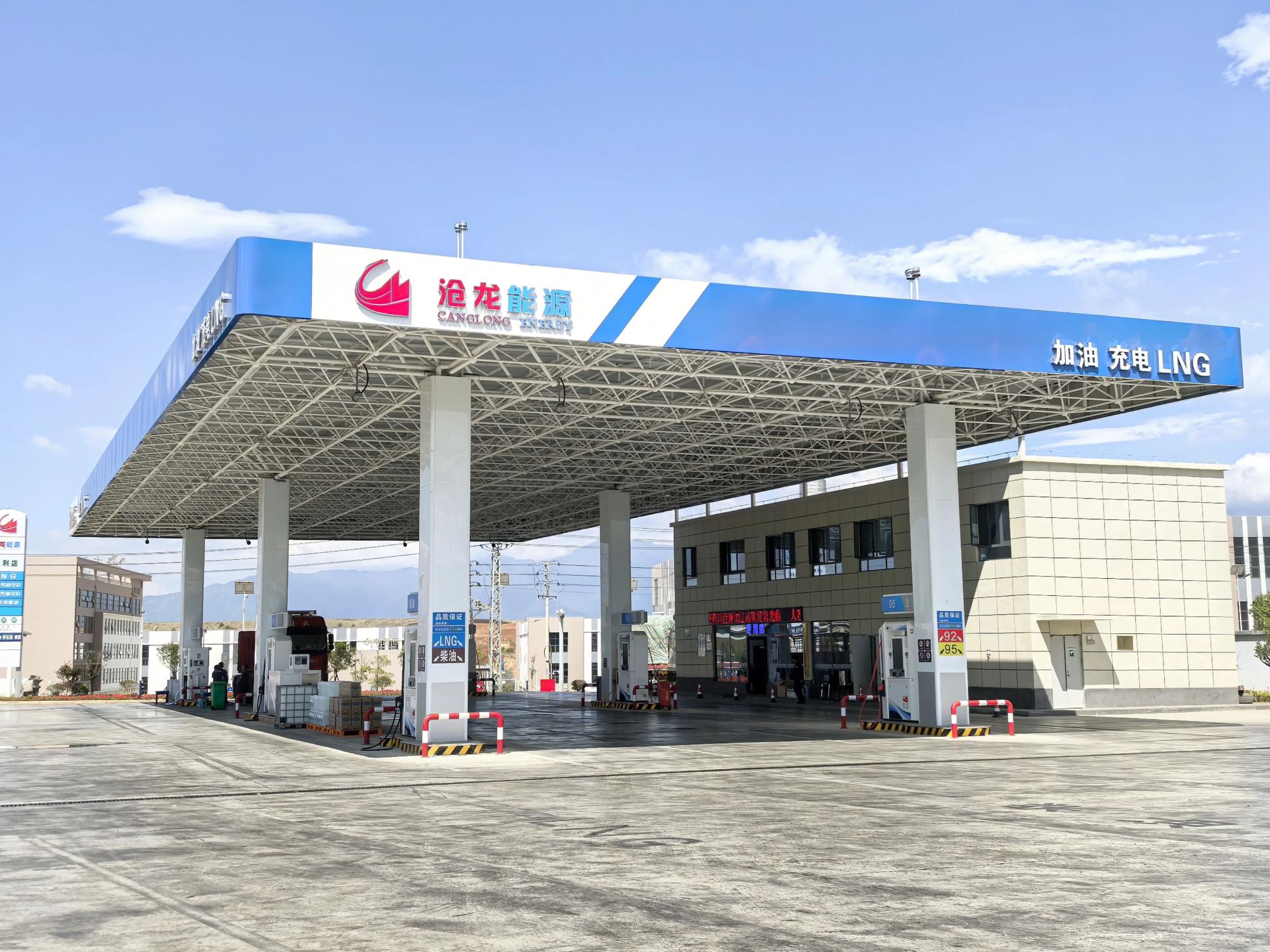 大理滄龍物流綜合能源加注站位于大理工業(yè)園區(qū)上登收費(fèi)站旁,該項(xiàng)目于2024年10月16日開工建設(shè),2025年4月9日竣工驗(yàn)收,周邊交通便利,輻射地區(qū)廣,是一座集加油、LNG燃料加注、充電等多種能源補(bǔ)給功能為一體的綜合能源補(bǔ)給平臺(tái)。站內(nèi)配備多種規(guī)格充電樁,支持快充和特快充,滿足不同車主充電需求,為新能源汽車出行提供保障。滄龍上登綜合能源加注站也是該公司繼2016年1月在大理經(jīng)開區(qū)滿江建成的大理州首個(gè)加氣站后的又一個(gè)更多功能的能源補(bǔ)給平臺(tái)。