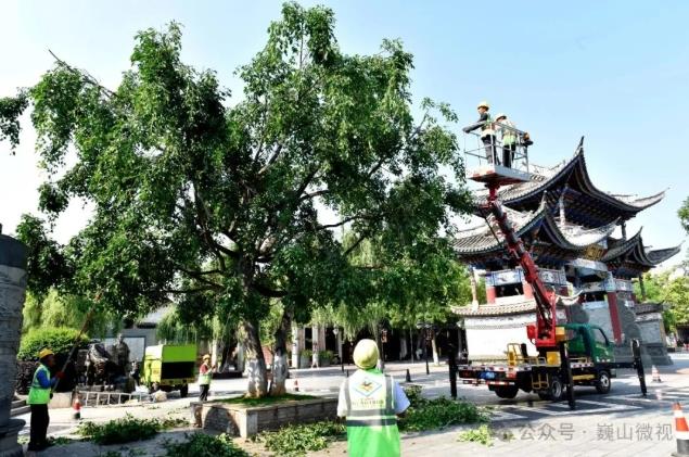 初夏時節(jié),巍山古城大街小巷草木蔥綠,鮮花盛開,文獻廣場、書院廣場、文獻街等地,綠化工人正在有條不紊地開展綠化養(yǎng)護工作,認真修剪草坪、花卉、綠植等綠化樹種,到處是一派綠化養(yǎng)護的忙碌景象。