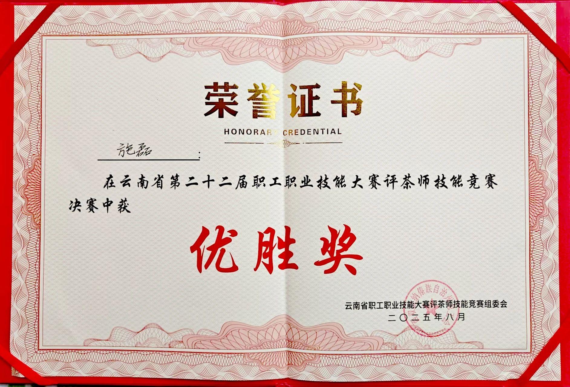 下關沱茶集團公司員工施磊榮獲“云南省第22屆職工職業(yè)技能大賽”評茶師技能競賽優(yōu)勝獎