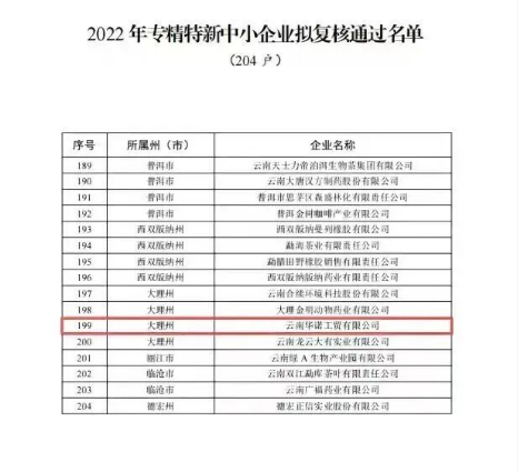 云南華諾工貿(mào)已通過省級(jí)專精特新中小企業(yè)復(fù)核
