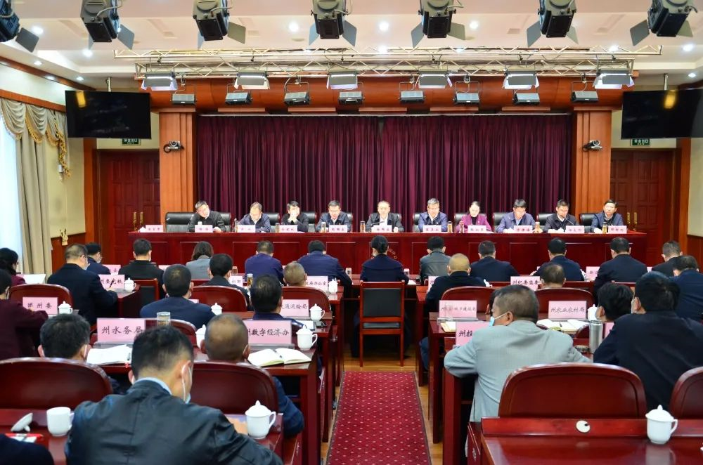 州委副書記、州長陳真永出席會議并講話,州政府副州長李澤鵬主持會議、秘書長施雙林參加會議。