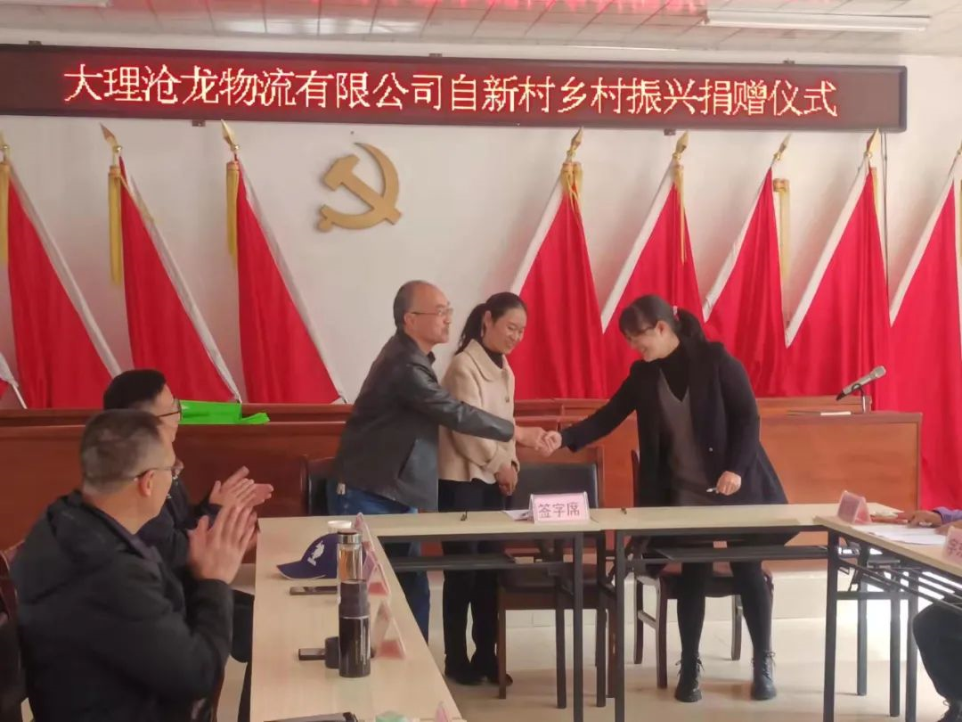 在捐贈儀式上,大理滄龍物流有限公司為關(guān)坪鄉(xiāng)自新村捐贈了3萬元的鄉(xiāng)村振興工作經(jīng)費,關(guān)坪鄉(xiāng)自新村向公司回贈錦旗。