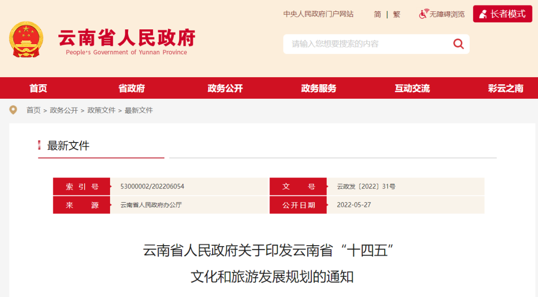 《云南省“十四五”文化和旅游發(fā)展規(guī)劃》