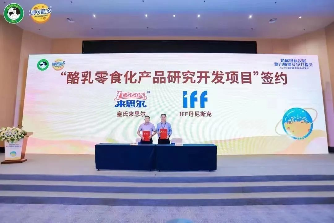 隨后,為促進(jìn)乳酪零食化產(chǎn)品的研發(fā),與會(huì)期間,在中國(guó)奶業(yè)協(xié)會(huì)會(huì)長(zhǎng)李德發(fā)院士、農(nóng)業(yè)農(nóng)村部畜牧獸醫(yī)局副局長(zhǎng)辛國(guó)昌等與會(huì)眾嘉賓的見證下,舉行了“酪乳零食化產(chǎn)品研究開發(fā)項(xiàng)目”的簽約啟動(dòng)儀式,來(lái)思爾奶源總監(jiān)張?jiān)拦獯砉九cIFF丹尼斯克(中國(guó))投資有限公司進(jìn)行了簽約。后期,雙方將發(fā)揮各自在乳酪方面的資源、技術(shù)和研發(fā)優(yōu)勢(shì),傳承經(jīng)典飲食文化初心,結(jié)合大理傳統(tǒng)乳扇工藝,將奶酪、本土乳扇與現(xiàn)代消費(fèi)者喜好相結(jié)合,合作研發(fā)營(yíng)養(yǎng)健康、具有特色風(fēng)味的成人奶酪零食產(chǎn)品,助力來(lái)思爾乳業(yè)打造世界級(jí)特色酸奶領(lǐng)軍企業(yè)。