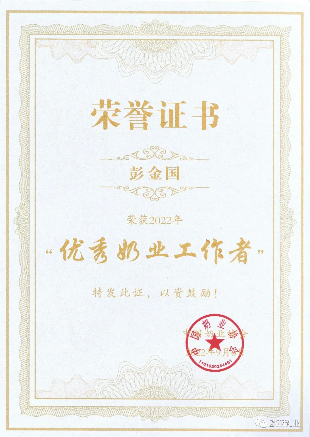 歐亞乳業(yè)獲全國“2022年度優(yōu)秀乳品加工企業(yè)”等兩項(xiàng)殊榮