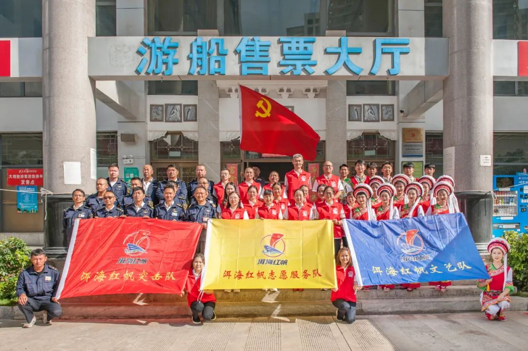 大理州人民政府、云投集團及旗下大理旅游集團在大理港碼頭舉行了首航儀式并共慶大理旅游集團成立20周年。首航儀式上,云投集團總裁柳明林為“風花雪月號”授旗,大理旅游集團黨委書記、董事長李志剛接旗。大理州委書記楊國宗宣布首航儀式開啟,所有領導和來賓登船參加“風花雪月號”新能源船首航。大理州委常委、州委秘書長楊瑜,云投集團副總裁鐵瑞林,云投集團黨委委員、總裁助理安彬等領導出席此次首航儀式。