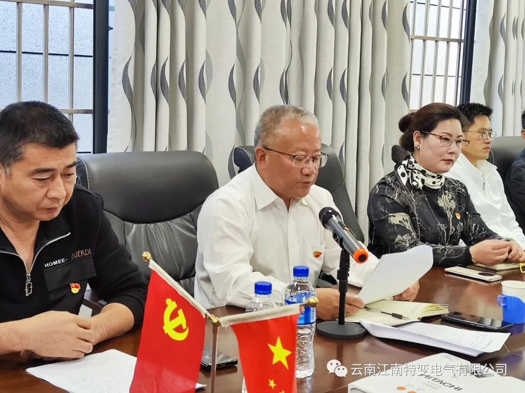 11月5日下午,云南江南特變電氣有限公司黨支部和大理州溫州商會黨支部的40余名黨員齊聚大理州溫州商會黨支部黨員活動室。首先,大理州溫州商會會長、支部委員、云南江南特變電氣有限公司董事長陳從文作了學(xué)習(xí)動員,他指出,學(xué)習(xí)宣傳貫徹黨的二十大精神是當(dāng)前和今后一個(gè)時(shí)期的首要政治任務(wù),溫州商會黨支部和云南江南特變電氣有限公司黨支部的每一名黨員都要提高政治站位,學(xué)思用貫通、知信行統(tǒng)一,只有學(xué)深悟透黨的二十大精神,才能引領(lǐng)商會和企業(yè)更好的開展工作。