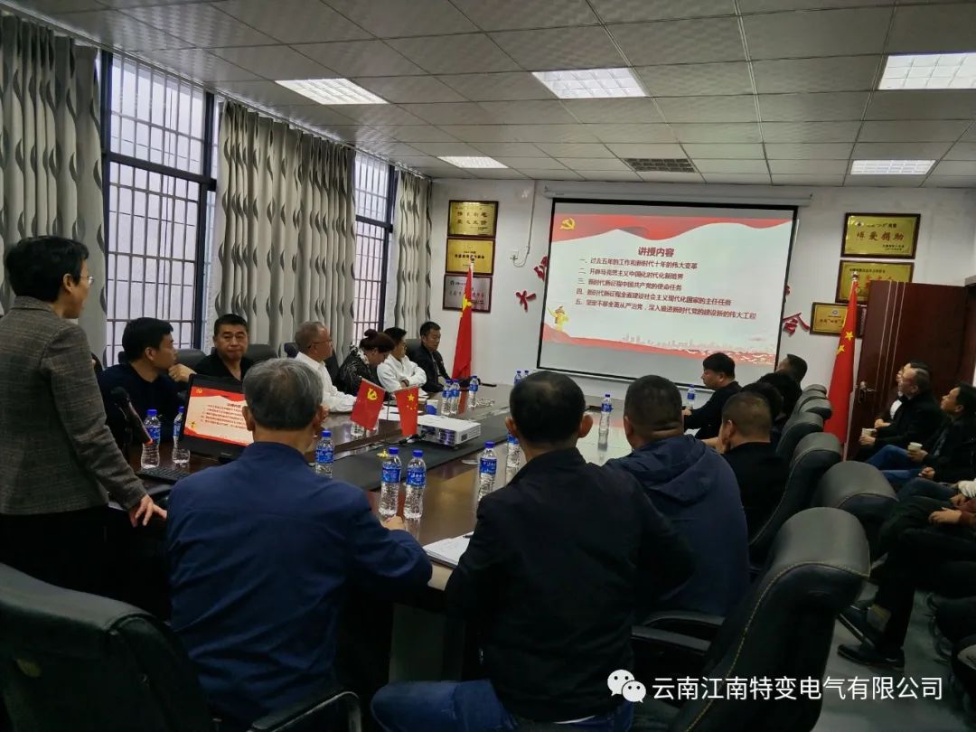 為了深入學(xué)習(xí)貫徹黨的二十大精神,不斷提高黨員在新征程上的黨性修養(yǎng),全面增強(qiáng)黨組織的凝聚力和戰(zhàn)斗力,引導(dǎo)黨員發(fā)揮先鋒模范作用,樹牢“四個(gè)意識”,堅(jiān)定“四個(gè)自信”,做到“兩個(gè)維護(hù)”。11月5日,大理州企業(yè)家協(xié)會副會長單位——云南江南特變電氣有限公司黨支部與大理州溫州商會黨支部聯(lián)合開展了“學(xué)習(xí)黨的二十大精神”主題黨日活動,邀請了大理州委黨校馬云波副校長為大家講授題為《擘畫宏偉藍(lán)圖、引領(lǐng)新的航程、創(chuàng)造新的偉業(yè)——黨的二十大精神解讀》的專題黨課。