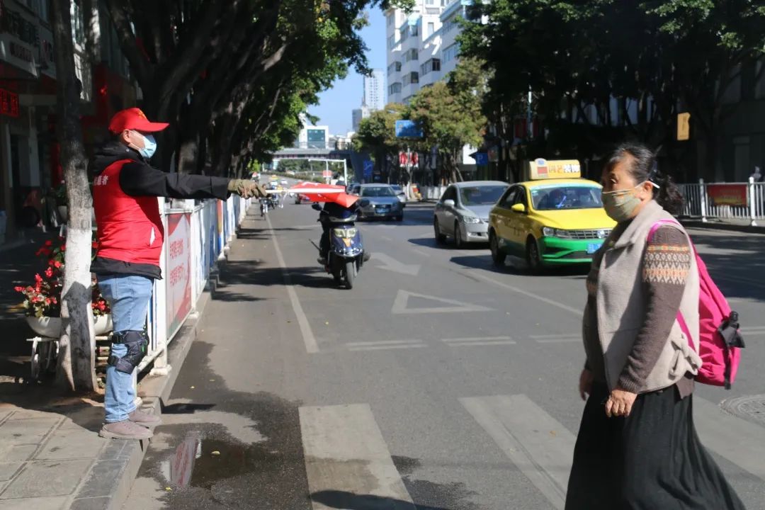 在下關城區(qū)重點路段都能看到志愿者們的身影,他們身穿紅色馬甲,頭戴志愿帽,手持“文明勸導”交通指揮旗,從早上7點到下午7點,在凜冽寒風與灼灼烈日下堅守在文明勸導崗位上,協助交警維持交通秩序,勸導行人在人行道內行走,不闖紅燈、不隨意橫過道路,不翻越隔離護欄等,營造了安全暢通的交通環(huán)境。