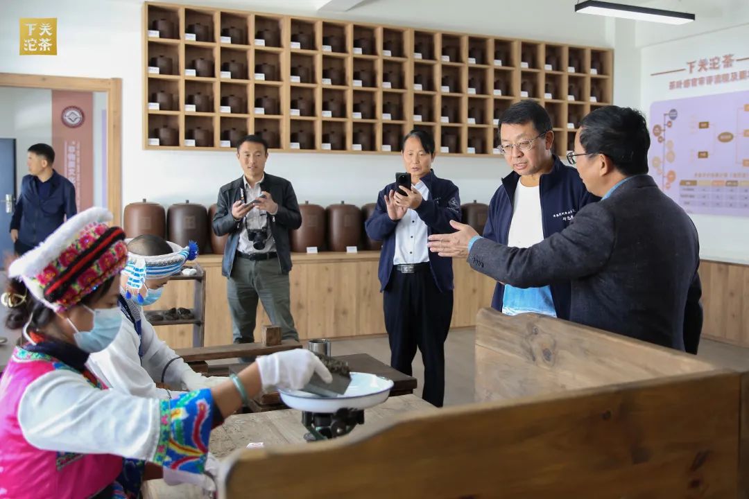 下關(guān)沱茶集團公司副總經(jīng)理杜發(fā)源的引領(lǐng)下,中國工程院院士及專家團隊一行參觀了下關(guān)沱茶館及中國(下關(guān))沱茶研究院。參觀過程中,杜發(fā)源副總經(jīng)理為嘉賓介紹了公司生產(chǎn)經(jīng)營及銀橋新廠區(qū)建設(shè)情況,細致講解了下關(guān)沱茶館《百年華章》《關(guān)茶匠心》《關(guān)茶珍檔》《百年醇香》等展陳內(nèi)容。