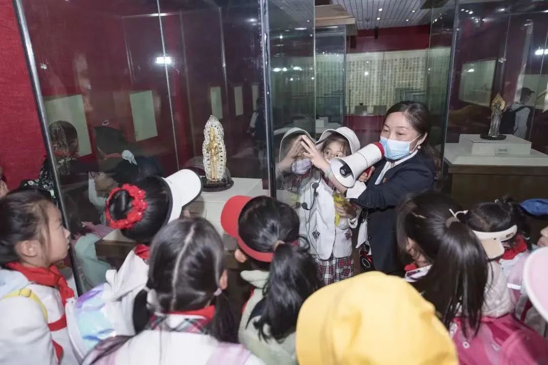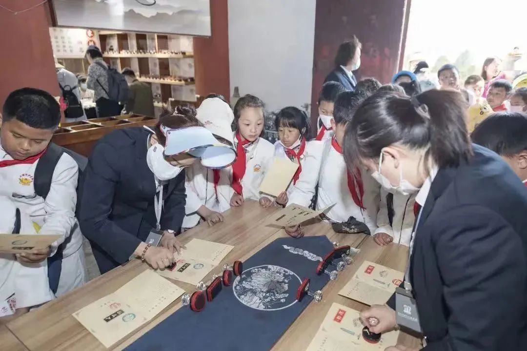 穿過塔區(qū)來到文物陳列館開展“藝術(shù)課堂”講學(xué),從線條的婉轉(zhuǎn)流暢,到鎏金銅像的造型刻畫,無一不在向孩子們彰顯南詔大理國時期的藝術(shù)造詣和獨特審美,感受千百年前文物的藝術(shù)熏陶。之后的“非遺課堂”,通過參與非遺甲馬體驗和文創(chuàng)印章活動提升孩子們的動手能力,并將集章冊帶回家紀念。