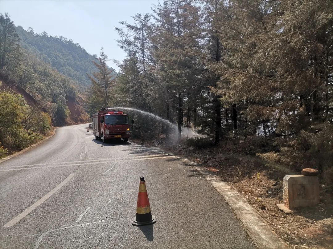 在灑水增濕作業(yè)現(xiàn)場(chǎng),工作人員嚴(yán)格控制水壓進(jìn)行濕化作業(yè),避免造成流淌水和植被損傷,同時(shí)防止水花過(guò)大噴濺到公路上造成泥濘濕滑,給行駛車輛造成不便。此次增濕作業(yè)距離共計(jì)30余公里,經(jīng)過(guò)灑水增濕,提高空氣濕度和植被含水率,以達(dá)到增濕防火的效果,有效降低了景區(qū)道路沿線火災(zāi)風(fēng)險(xiǎn)隱患。
